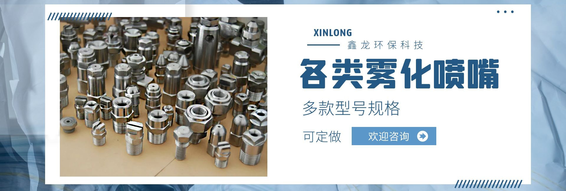 深圳市鑫龍環??萍加邢薰臼菍I從事各類噴嘴研制和開發的廠家,技術力量雄厚,生產工藝先進,檢測手段齊全,管理制度嚴格,產品質量穩定可靠。產品種類多達上萬種,適用于涂裝處理、環保、線路板、電子電力、汽車制造、家電制造、造紙業、紡織業、防火等行業;我公司產品不僅為國內多家大中型企事業選用,還配套外銷日本、美國、東南亞等國家和地區。我們具有本行業前衛的噴嘴制造設施,在我們裝備完善的噴嘴實驗室,可以進行各種類型噴嘴的測試研究,以優化噴霧系統的性能。我公司提供專業技術、應用和售后服務,幫助用戶選擇適合的噴嘴,并保持噴嘴在良好條件下運行。從噴嘴選擇指導,到量身定制的設計,直到噴霧顆粒的測試分析,在每個訂單中都包含了我們好的技術支持,用戶反映:我司顯著的特點是銷售工程師在幫助用戶降低成本、減少加工和維修時間,降低工業用水和化學劑消耗等方面有著非常豐富的經驗,使用戶可以更經濟、更有效的解決實際問題!我們繼續堅持專業是金的理念,制造好的噴嘴是我們永遠的追求和努力!